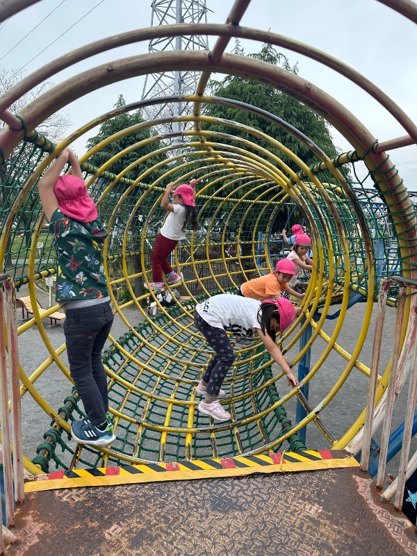 公共のバスを利用して上千葉砂原公園に行きました。 お煎餅を食べ、公園内の自転車に乗ったり大きな遊具で遊びました。