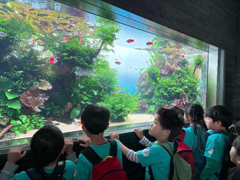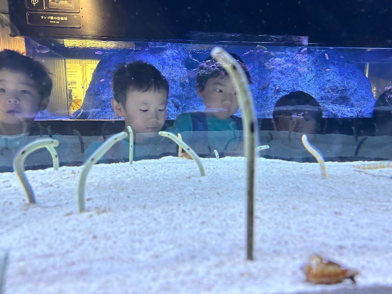 つき組とほし組ですみだ水族館に行きました。 様々な生き物を興味津々で見ました。
