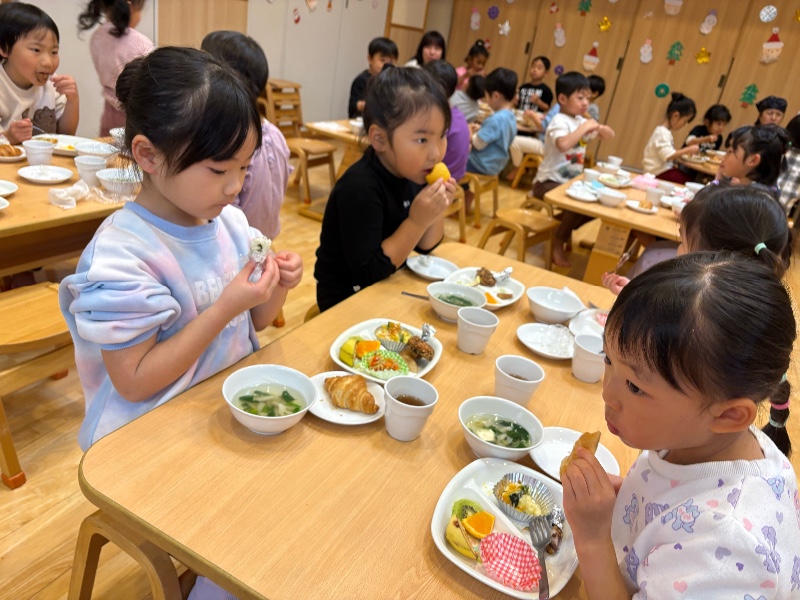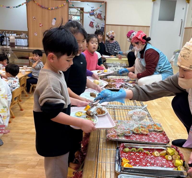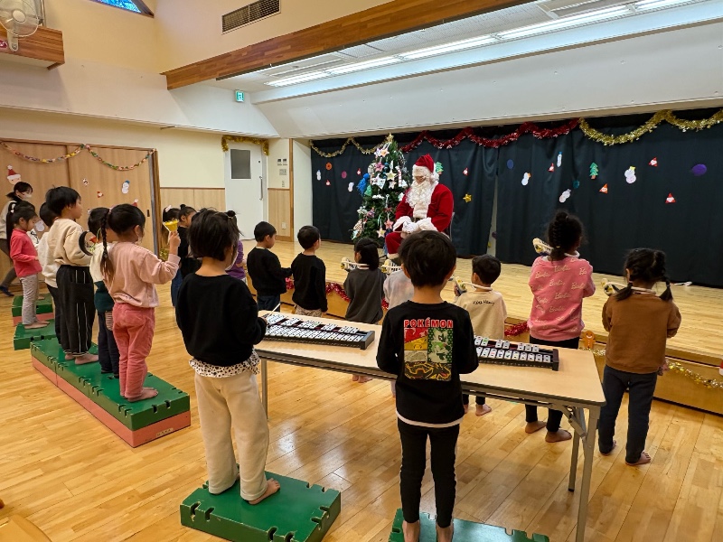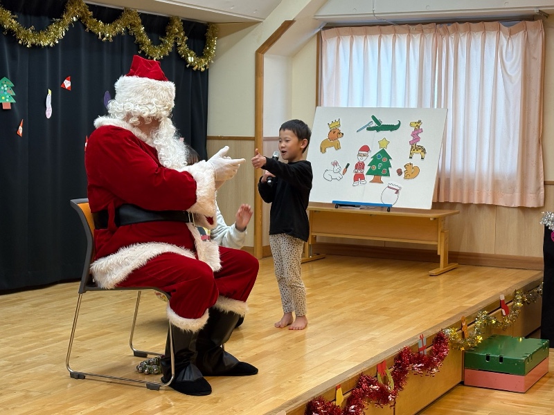 写真館 クリスマス会 2025/12/23 ホールにサンタクロースが来てくれました! ほし組の代表の人が質問をしました。 また、ほし組の合奏「サンタが街にやってくる」に合わせてみんなで歌を歌いました。 クラスに戻るとサンタクロースからのプレゼントを見つけて喜びました。 給食はやま・にじ・つき・ほし組がホールにてクリスマスバイキングを楽しみました。 << 一覧に戻る