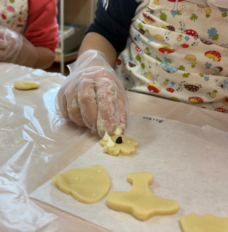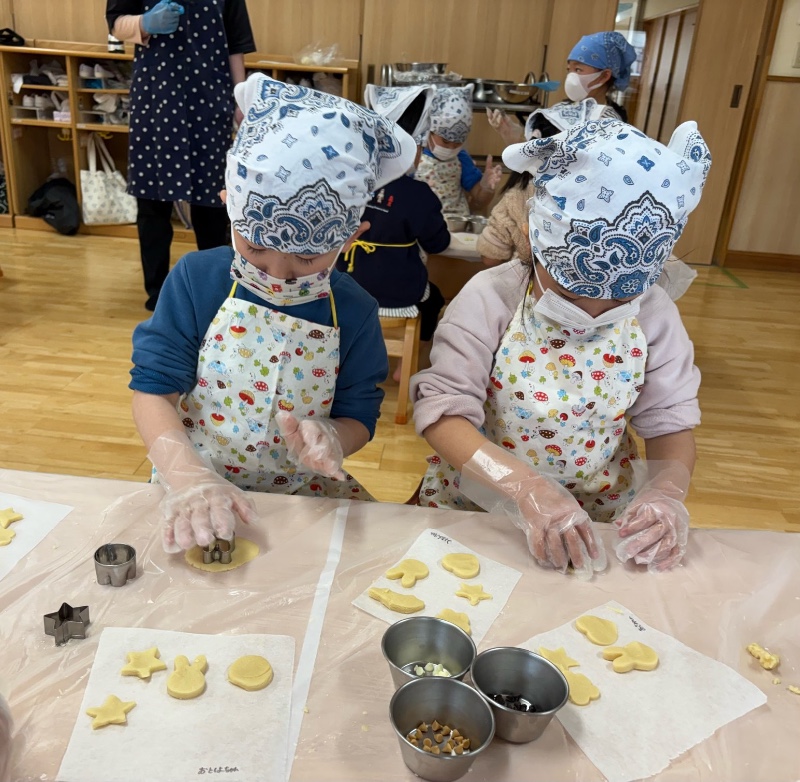 写真館 食育活動(つき組) 2026/01/21 クッキーの材料はスーパーに買いに行きました。 グループに分かれて作業をしました。 ボウルに材料を入れ生地を作り型抜きをしました 焼きあがったクッキーは おやつ時に食べました。 << 一覧に戻る