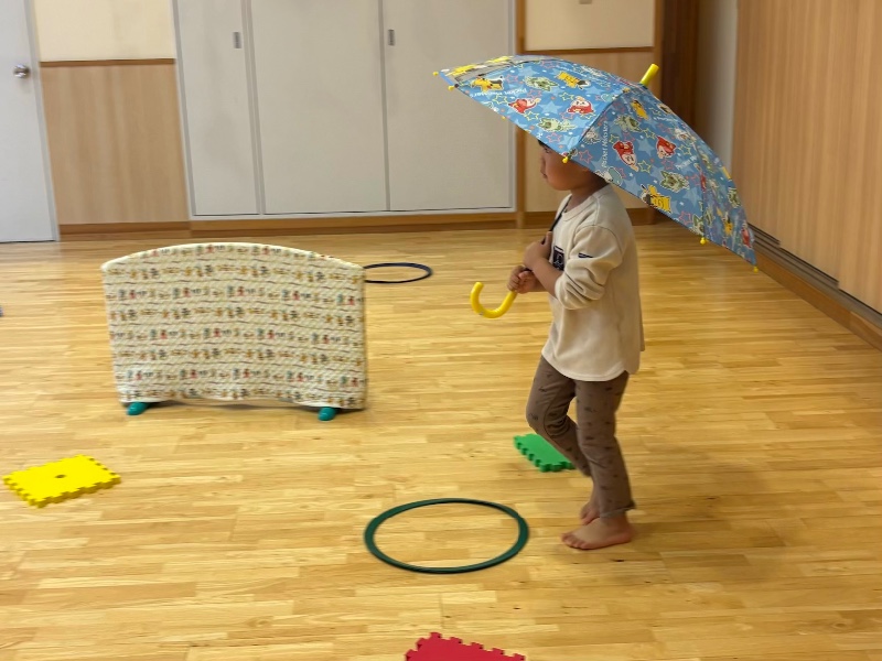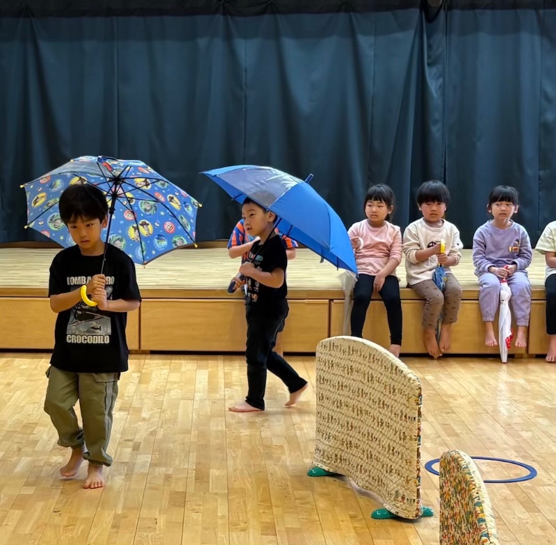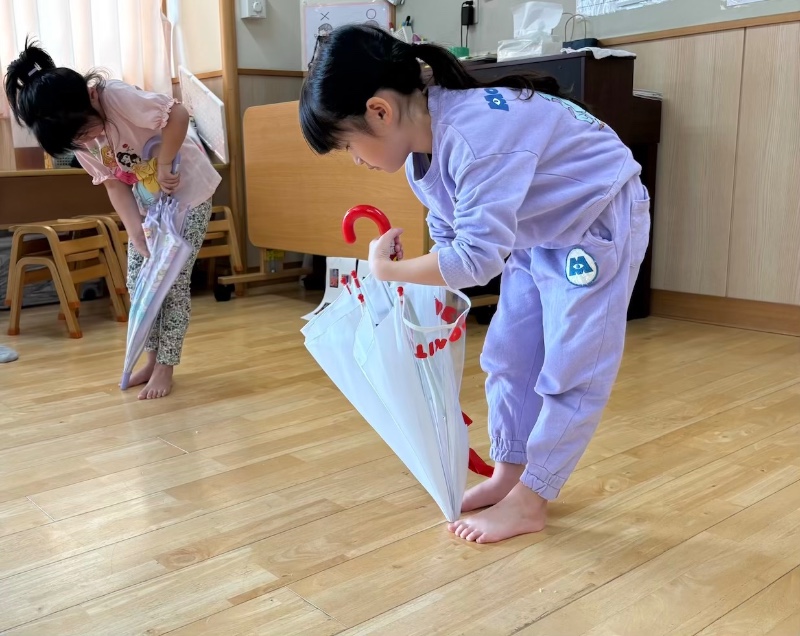 傘の持ち方を確認しました。